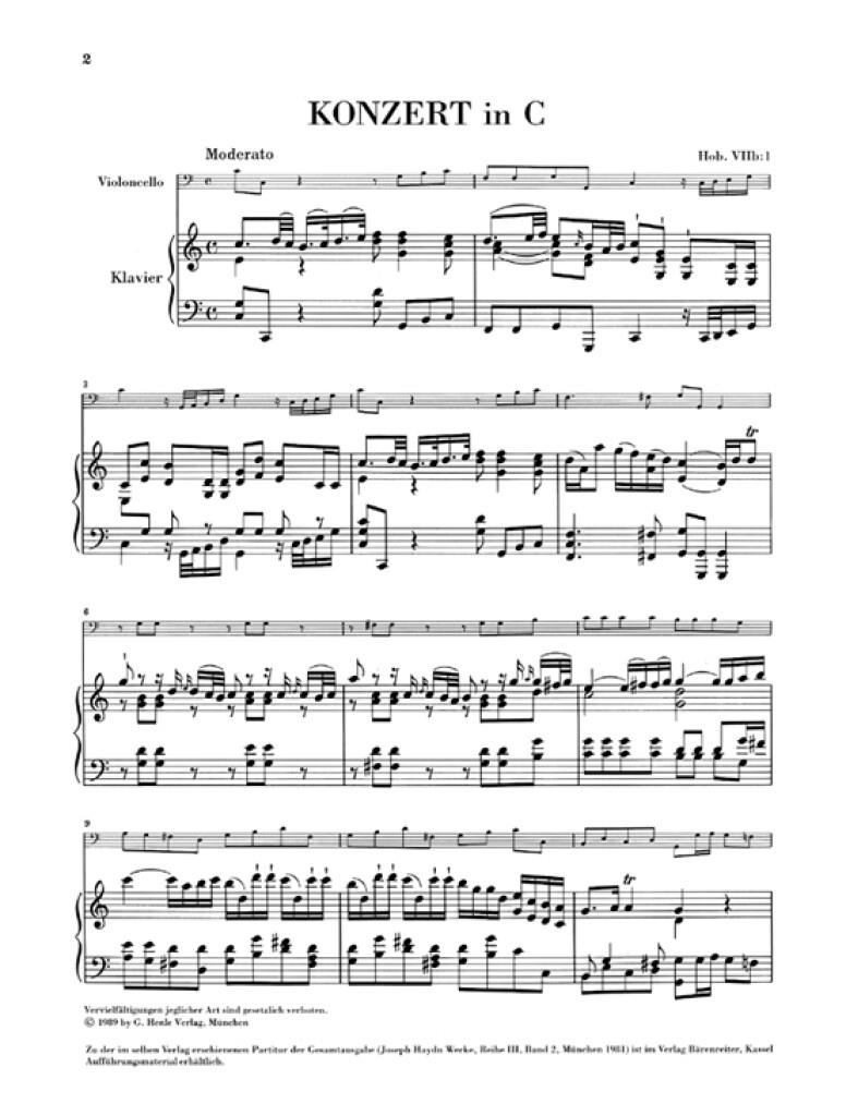 Avec leur ton apparemment léger et élégant, les concertos pour violoncelle et orchestre de Joseph Haydn constituent une pierre de touche pour tout violoncelliste. Le concerto en ut majeur Hob. VIIb:1 fut écrit vraisemblablement entre 1762 et 1765, alors qu’Haydn était déjà maître de chapelle pour le prince Esterházy. Pendant longtemps, l’existence de ce concerto ne fut connue que parce que Haydn l’avait mentionné dans le répertoire manuscrit qu’il tenait de ses oeuvres, sans que l’on en n’ait jamais vu la partition. Il fallut attendre 1961 pour qu’une copie de l’oeuvre soit découverte et lui permette de connaître le succès au côté du célèbre concerto en ré majeur Hob. VII:2. Pour lapublication de la réduction pour piano de ce concerto, nous avons eu le plaisir de collaborer avec la spécialiste de Haydn Sonja Gerlach. Cette dernière enrichit l’édition urtext d’une préface détaillée où elle aborde notamment le sujet de la réalisation des ornements et celui des cadences reproduites.