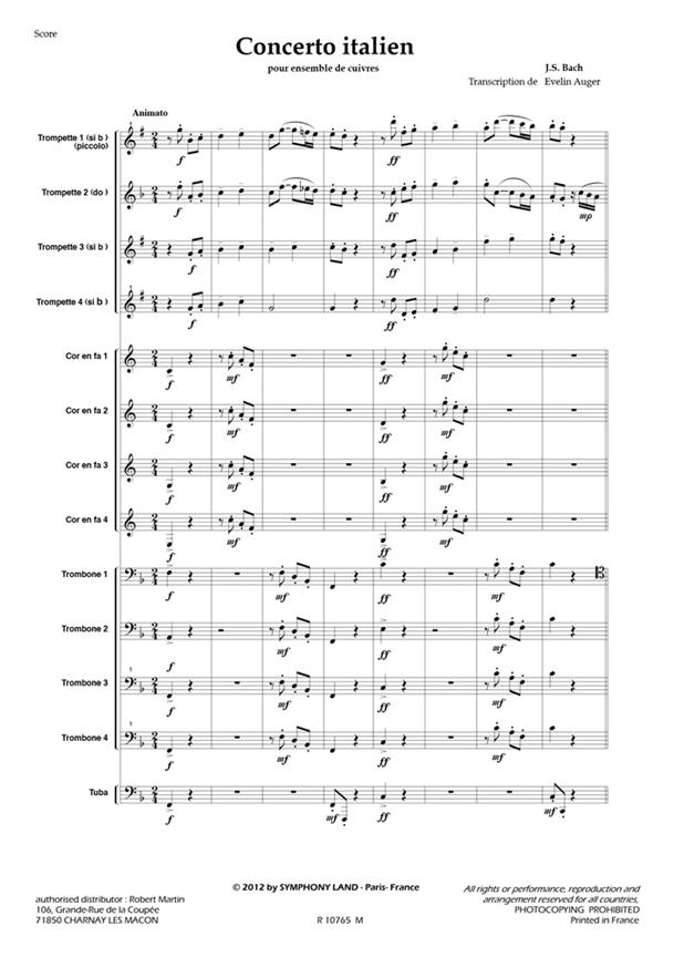 Concerto Italien (4 Trompettes, 4 Cors, 4 Trombones Et Tuba) BACH JOHANN SEBASTIAN
