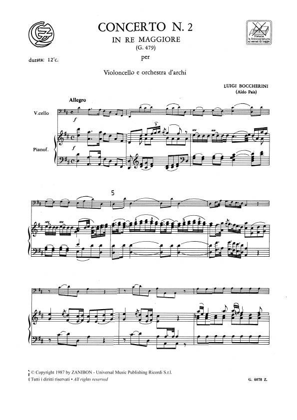 Concerto N. 2 In Re Maggiore (G. 479) Per Violoncello E Orchestra D’Archi BOCCHERINI LUIGI