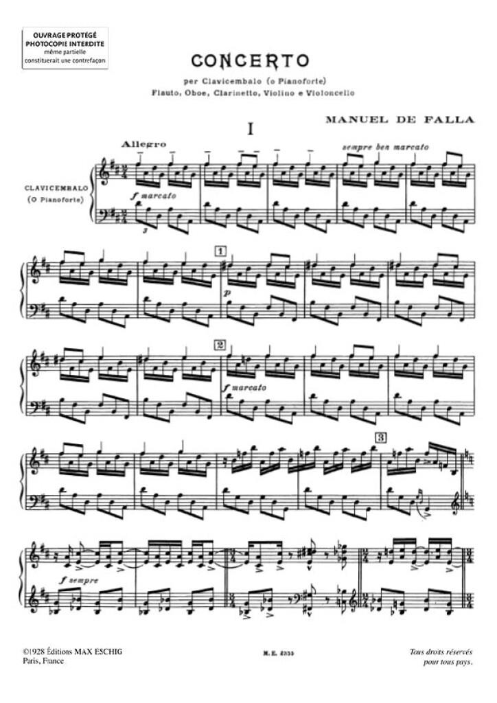 Concerto Partie De Piano Ou Clavecin FALLA MANUEL DE