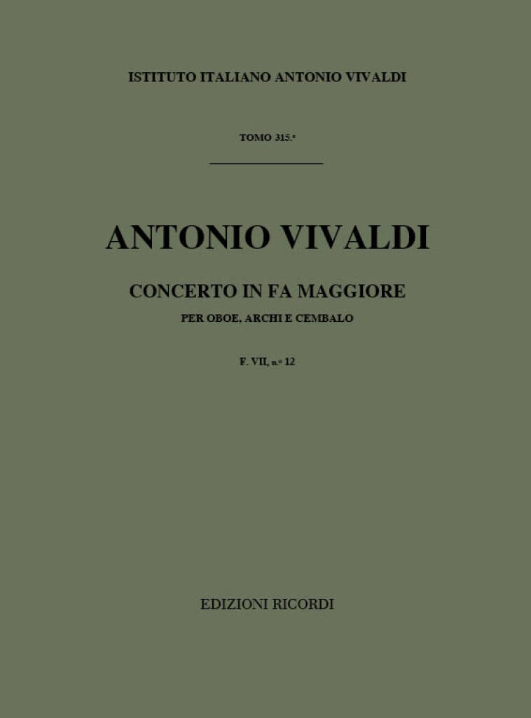 Concerto Per Oboe Archi E Cembalo In Fa Maggiore F. VII N. 12 – Tomo 315 VIVALDI ANTONIO