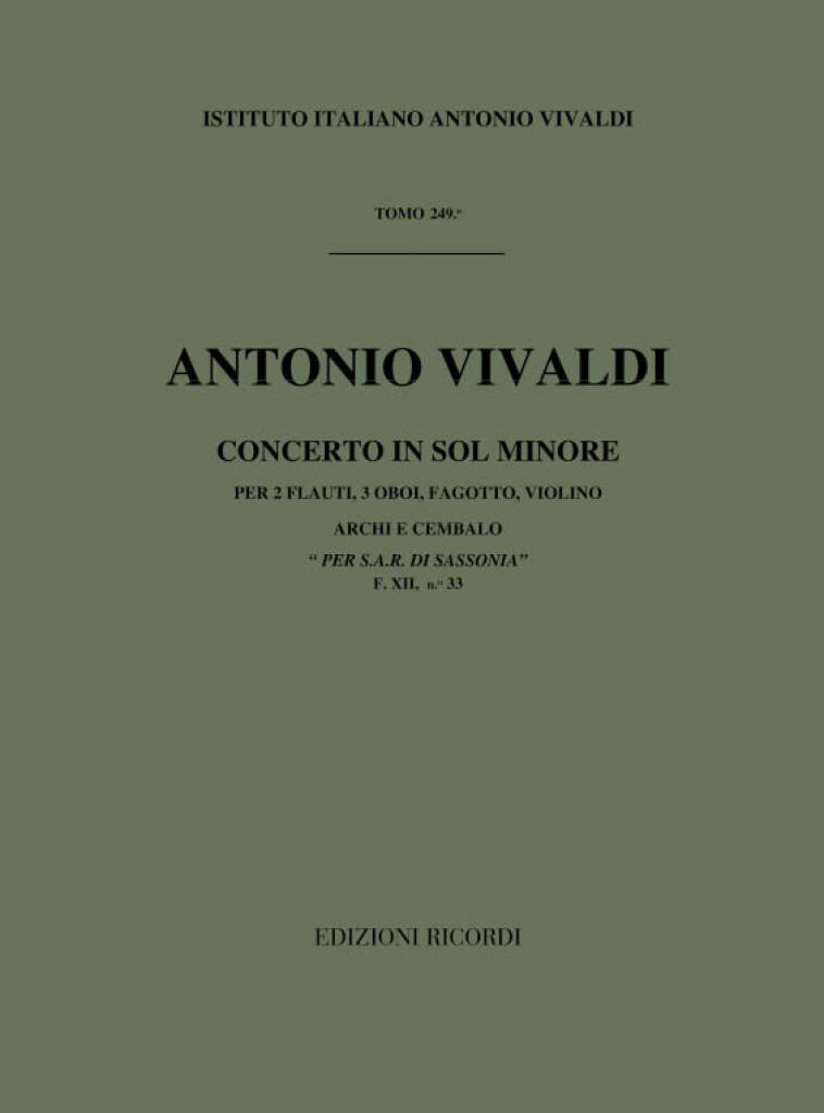 Concerto Per Str. Div. Archi E B.C.: In Sol Min.Rv 576 F.XII/33 Per 2Fl. 3 Ob. Fg.E Vl. Per S.A.R. Di Sassonia Tomo 249 VIVALDI ANTONIO