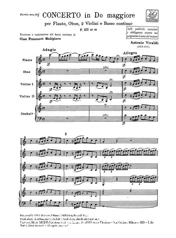 Concerto Per Strum. Diversi E B.C.: In Do Rv 87 F.XII/30 Per Fl.Ob. E 2 Vl. Tomo 155 VIVALDI ANTONIO