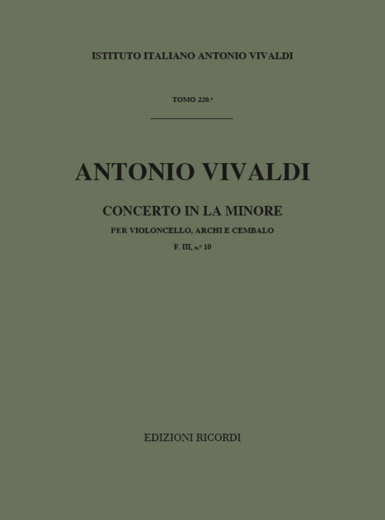 Concerto Per Vc., Archi E B.C.: In La Min. Rv 419 – F.III/10 Tomo 220 VIVALDI ANTONIO
