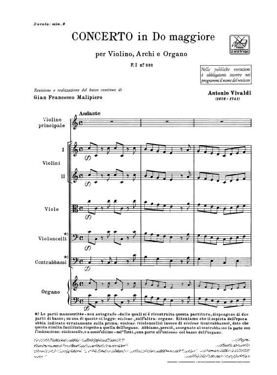 Concerto Per Vl., Archi E B.C.: In Do Rv 175 – F.I/232 Tomo 508 VIVALDI ANTONIO