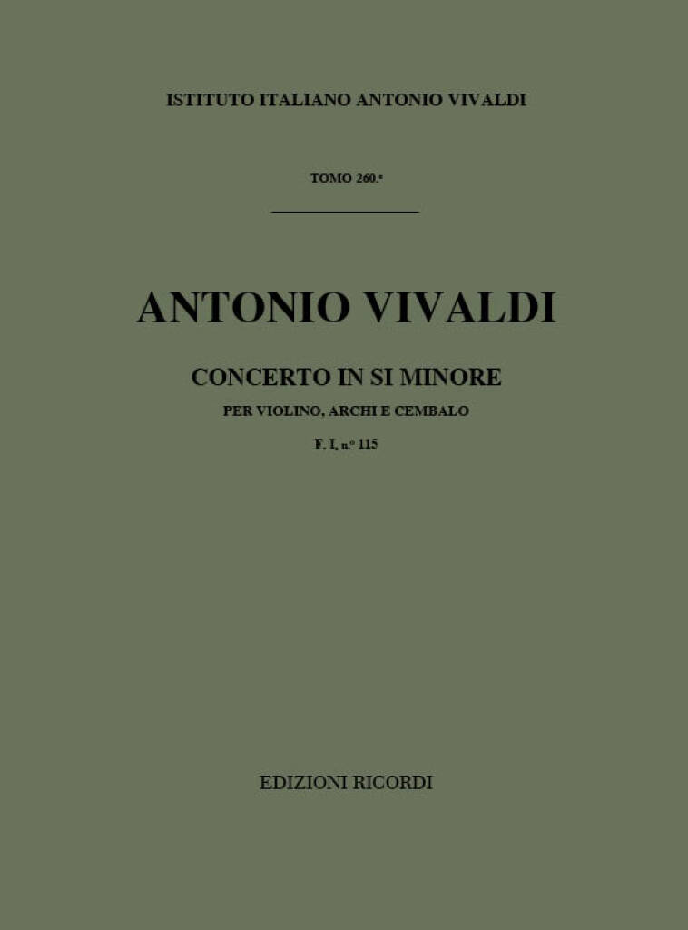 Concerto Per Vl., Archi E B.C.: In Si Min. Rv 386 – F.I/115 Tomo 260 VIVALDI ANTONIO