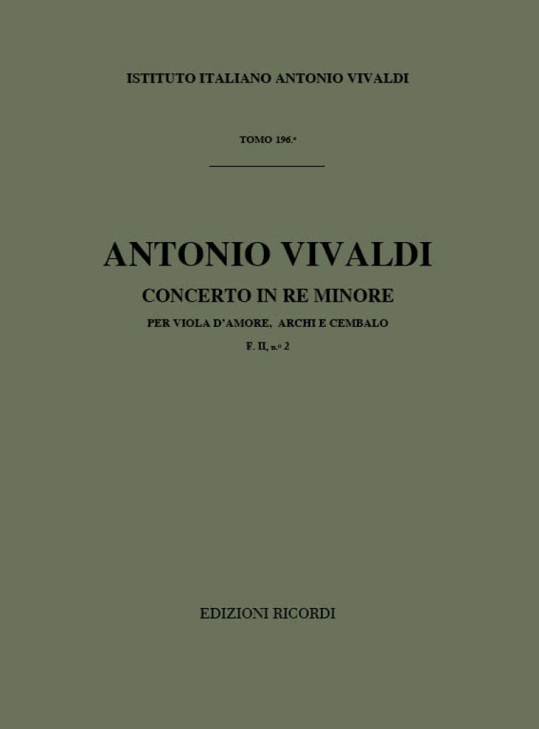 Concerto Per Vla D’Amore Archi E Bc: In Re Min. Rv 394 F.II/2 Tomo 196 VIVALDI ANTONIO