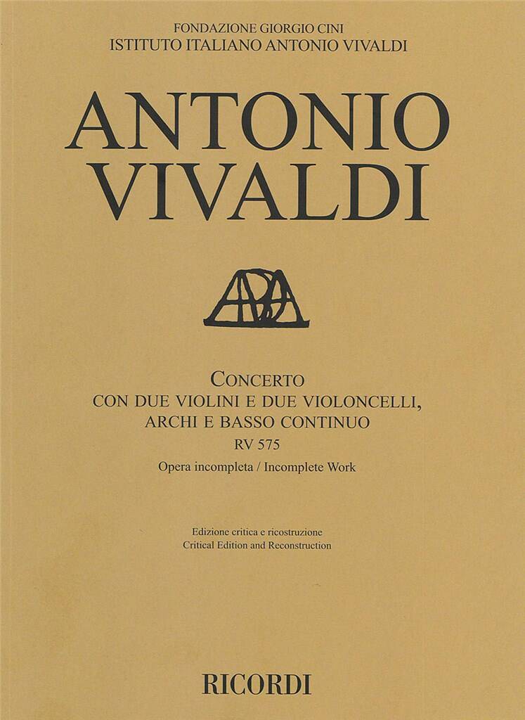 Concerto Rv 575 VIVALDI ANTONIO 2 Violons, 2 Violoncelles, Cordes et Basse Continu Ricordi 49,30€