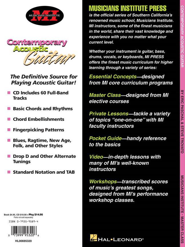 Cet ouvrage conçu à partir des cours optionnels, enseignées à l'Institut de musiciens célèbres est la source définitive pour jouer de la guitare acoustique ! Les sujets abordés comprennent : accords de base et les rythmes - embellissements corde - fingerpicking patrons - blues, ragtime, nouvel âge, folk et autres styles - drop d et les autres ajustements d'apportés remplaçant - et plus encore ! Le CD d'accompagnement comprend 60 pleine bande pistes et exemples sont écrites en notation standard et l'onglet