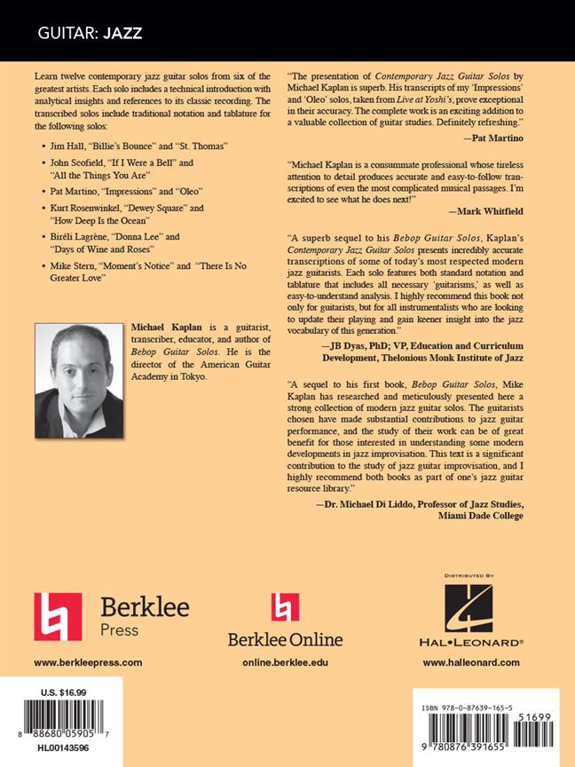 Avec ce Berklee Guide, vous apprendrez 12 solos de guitare jazz contemporain de six des plus grands artistes du genre : Jim Hall, John Scofield, Pat Martino, Kurt Rosenwindel, Biréli Lagréne et Mike Stern.