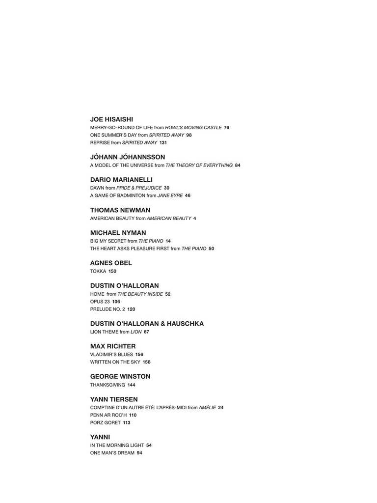 15. Home from The Beauty Inside [Dustin O'Halloran] 16. In The Morning Light [Yanni]