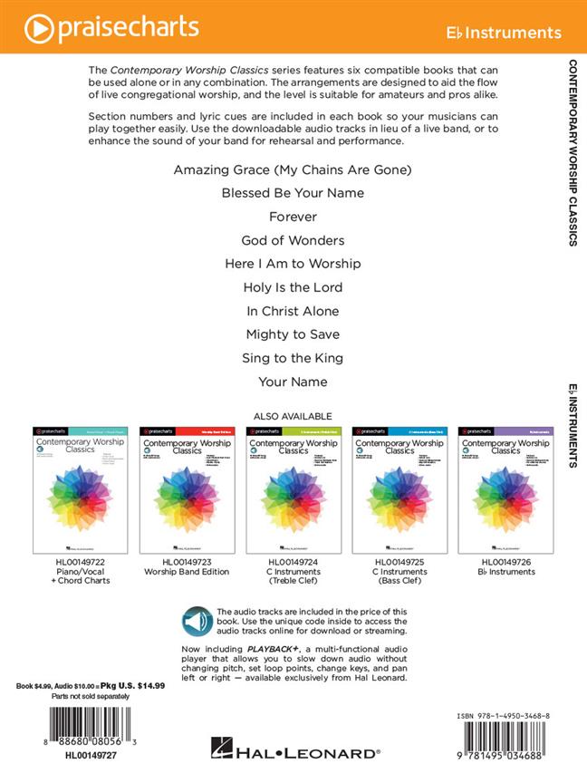 La série Contemporary Worship Classics propose six livres compatibles pouvant être utilisés seuls ou dans n’importe quelle combinaison. Les arrangements sont conçus pour faciliter le déroulement du culte congrégationnel en direct, et le niveau convient aussi bien aux amateurs qu’aux professionnels. Les numéros de section et les indices des paroles sont inclus dans chaque livre afin que les musiciens puissent jouer ensemble facilement. Utilisez les pistes audio téléchargeables à la place d’un groupe live, ou pour améliorer le son de votre groupe lors des répétitions et des concerts. 10 chansons : Amazing Grace (My Chains Are Gone) · Béni soit ton nom · Pour toujours · Dieu des Merveilles · Me voici pour adorer (Lumière du monde) · Saint est le Seigneur · En Christ Seul · Puissant pour sauver · Chante au Roi · Votre nom.