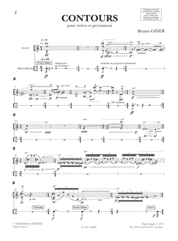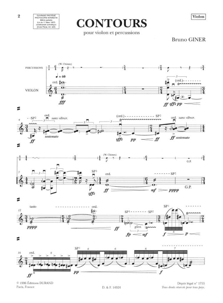 Contours Violon Et Percussion GINER BRUNO