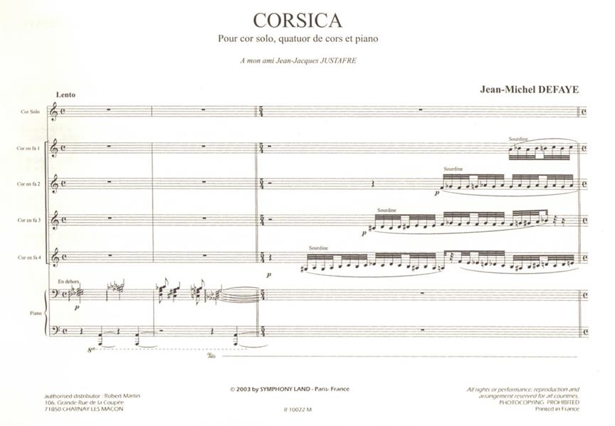 Corsica Cor Solo, 4 Cors Et Piano DEFAYE JEAN-MICHEL