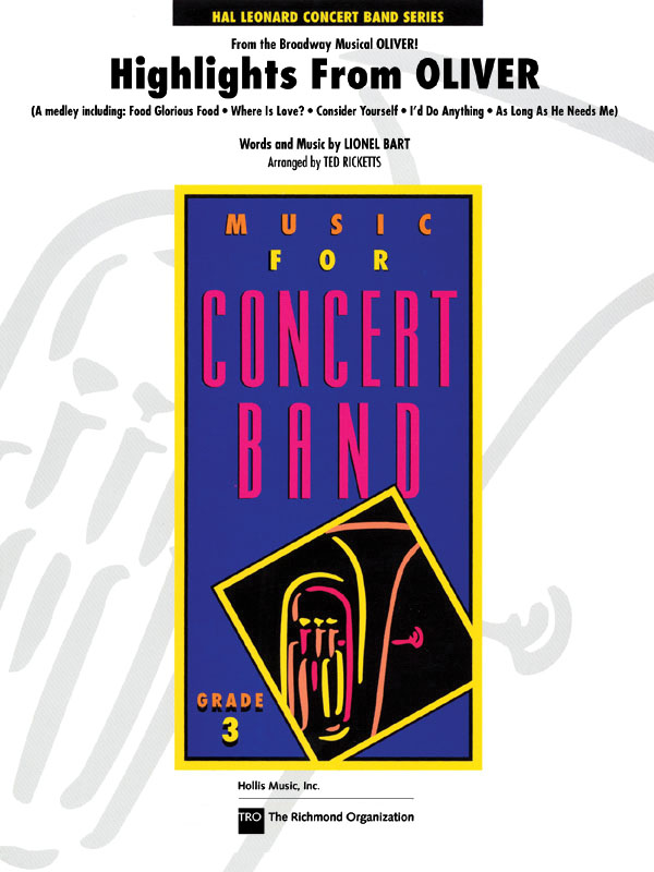 Featuring some où the most tuneful and memorable melodies from Broadway, here is a sparkling medley from the musical hit Oliver! This well-paced setting for young bands includes: Consider Yourself, Fooù Glorious Food, As Long AsHe Needs me, I ' d Do Anything and Where Is Love?