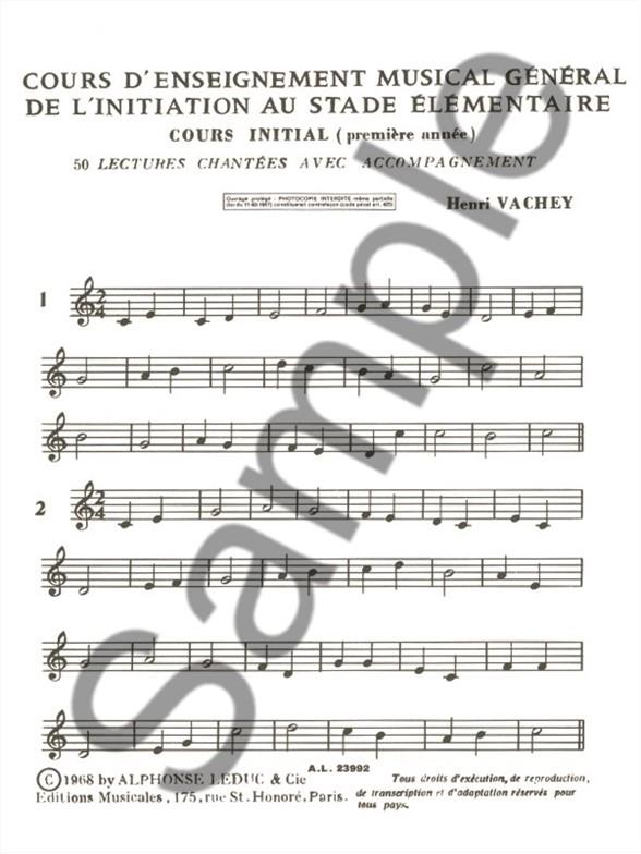 Cours Enseignt Musical General 1ere Anneeinit.50 Lect.1 Cle Fin Annee S – Acc1 VACHEY HENRI