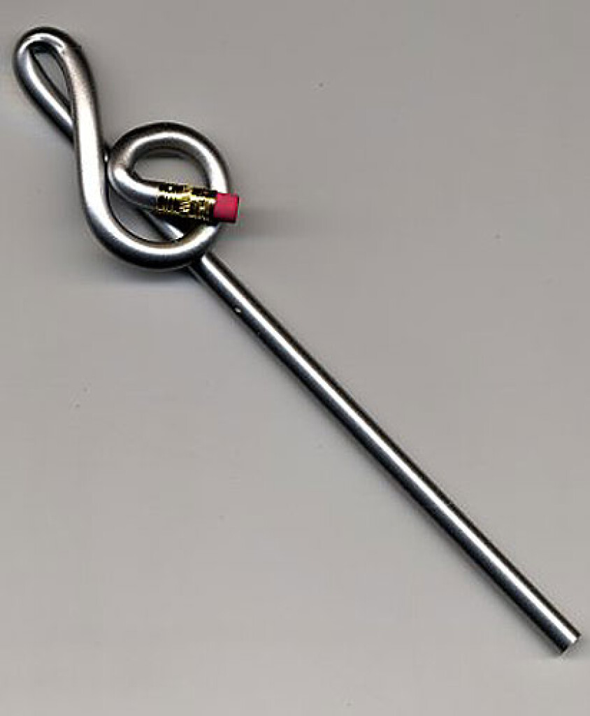 The funky Bentcil is a working pencil, but has been bent into a quirky Treble Clef shape. This one comes in a sumptuous silver colour in a practical pack of 5. You'll be the talk of the town with this music-themed pencil that would be perfect for everything from writing the shopping list to composing your next hit song. It's a great combination of fun and practical, and makes a great talking point. Be sure to check out the other colours available. The funky Bentcil is a working pencil, but has been bent into a quirky Treble Clef shape. This one comes in a sumptuous silver colour in a practical pack of 5. You'll be the talk of the town with this music-themed pencil that would be perfect for everything from writing the shopping list to composing your next hit song. It's a great combination of fun and practical, and makes a great talking point. Be sure to check out the other colours available.