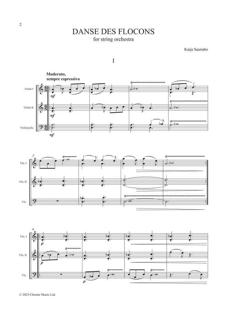 The two violin duets entitled Danse des Flocons were first written by the composer for her daughter Aliisa, who at the time was seven years old and an aspiring violinist. The titular flocons (flakes) refer both to snow - and Aliisa’s middle name Neige - and to pollen raining from the trees in the spring and summer. Danse des Flocons I & II are arranged here for string orchestra with violin or flute solo.