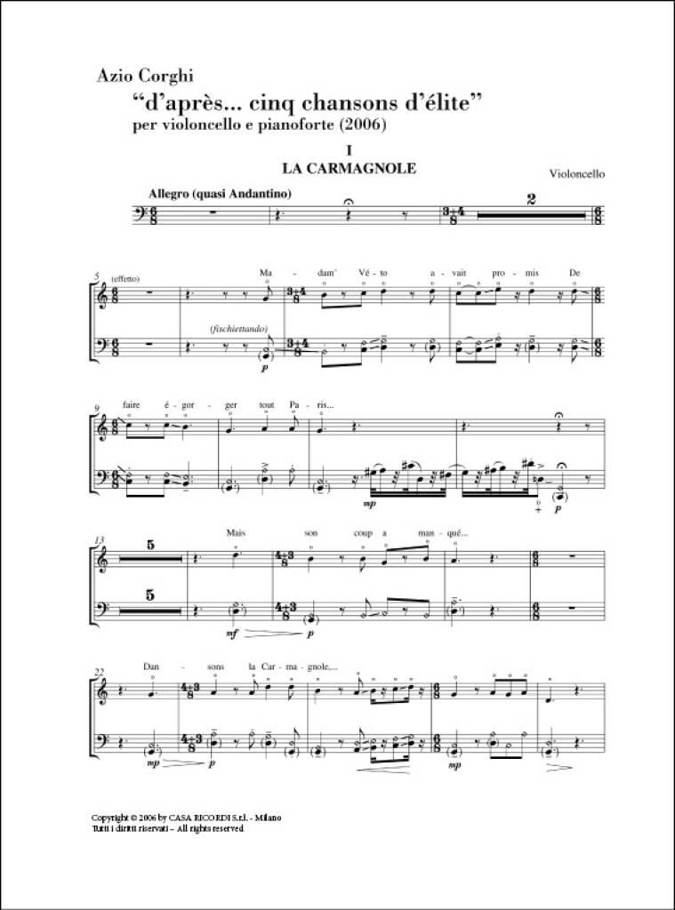 D’Apres… Cinq Chansons D’Elite CORGHI AZIO