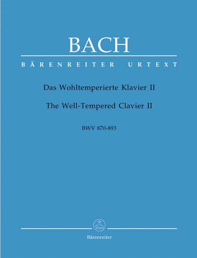 The Well-Tempered Clavier II BWV 870-893 - 48 Preludes & Fugues. Harpsichord, Piano. Johann Sebastian Bach's idea of composing a collection of preludes and fugues in all major and minor keys was new and revolutionary in the second decade of the 18th century, particularly when considering that the tuning in use up top then distributed pure and “impure” intervals irregularly throughout the keys. The result was that one could play very well in many keys, but not at all in others. Bach was the first composer to conquer the entire breadth pf tonality in his Das Wohltemperirte Clavier (The Well-Tempered Clavier), thus providing the musical world with amasterpiece of keyboard literature. ”The ‘Well-Tempered Clavier’ is the Old Testament, Beethoven's sonatas the New. We must believe in both. ” Hans von Bülow The preludes and fugues of “The Well-Tempered Clavier” embrace an entire cosmos of compositional devices and musical characters – the “ne plus ultra” of ‘unity through diversity’. Here Bach not only presented the sum total of keyboard artistry in his day but foresaw its future evolution. His treatment of the keys marked a turning point in music history.
