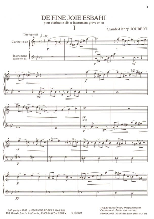 De Fine Joie Esbahi, Avec Instrument Grave En Ut JOUBERT CLAUDE-HENRY