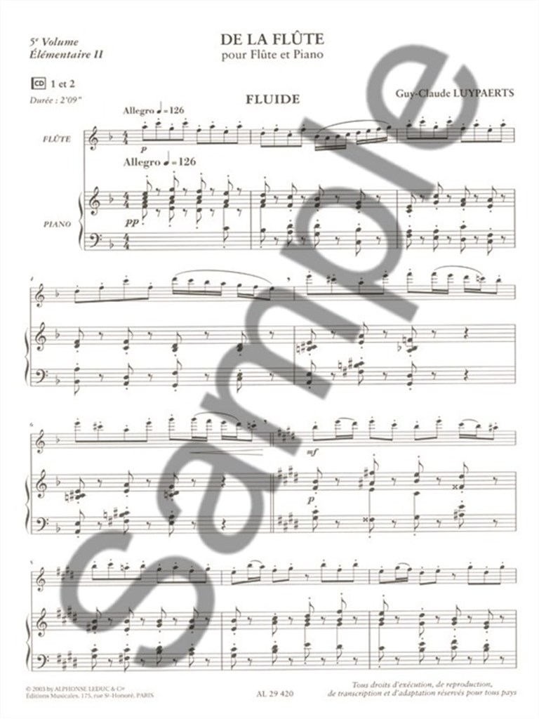 De La Flûte Vol.5/Elementaire 2/Flûte Et Piano LUYPAERTS GUY