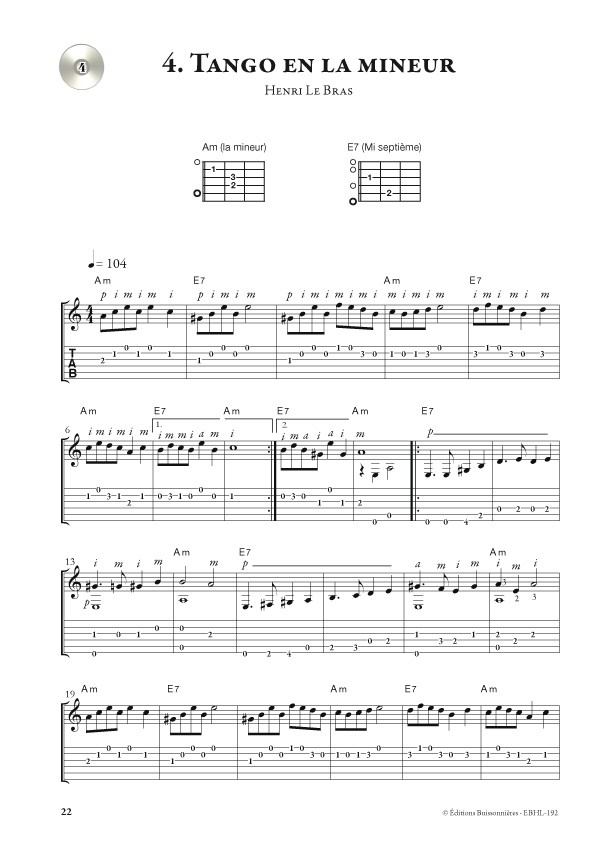 Trente-cinq mélodies, de difficulté progressive, sont proposées pour travailler l'accompagnement en commençant par les accords les plus simples. Un disque accompagne la méthode, permettant de jouer la partie de guitare d'accompagnement, d'abord en accords plaqués, puis en arpèges, en accords brisés, ou en rythmes à la main droite.