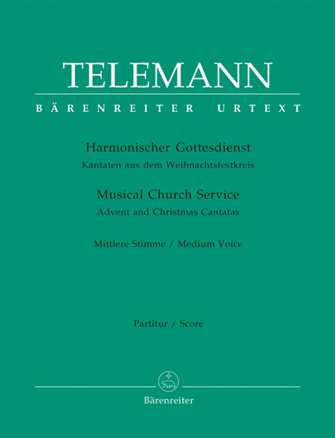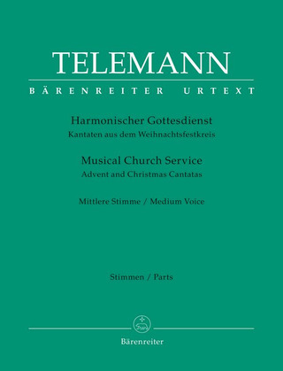 72 Solo Cantatas for Voice, Melodic Instrument and Basso continuo. Advent & Christmas - Medium Voice. When Telemann issued his first annual cycle of printed cantatas, Der Harmonische Gottesdienst (Hamburg, 1725-6), he was already one of the leading cantata composers of his time. Thanks to their brevity and their simple scoring, the 72 solo cantatas have remained very popular to the present day. These editions (BA 5891 through to BA 5896) divide the annual cycle into cantatas for high voice and cantatas for medium voice. Each series spreads the works over three volumes accompanied by separate parts forsolo instrument and continuo. The cantatas follow the order of the liturgical year, beginning with the Christmas season and continuing with Easter and Trinity. Being practically minded, Telemann arranged the ambitus of the Vocal parts so that the cantatas for medium voice are ‘also suitable for an ordinary alto or bass’. Similarly, the solo instruments are suitable for Violin, Oboe, Recorder or Flute. - Interesting solo cantatas for use in church services. - Urtext from the Telemann Edition. - Separate parts for instrument and continuo.