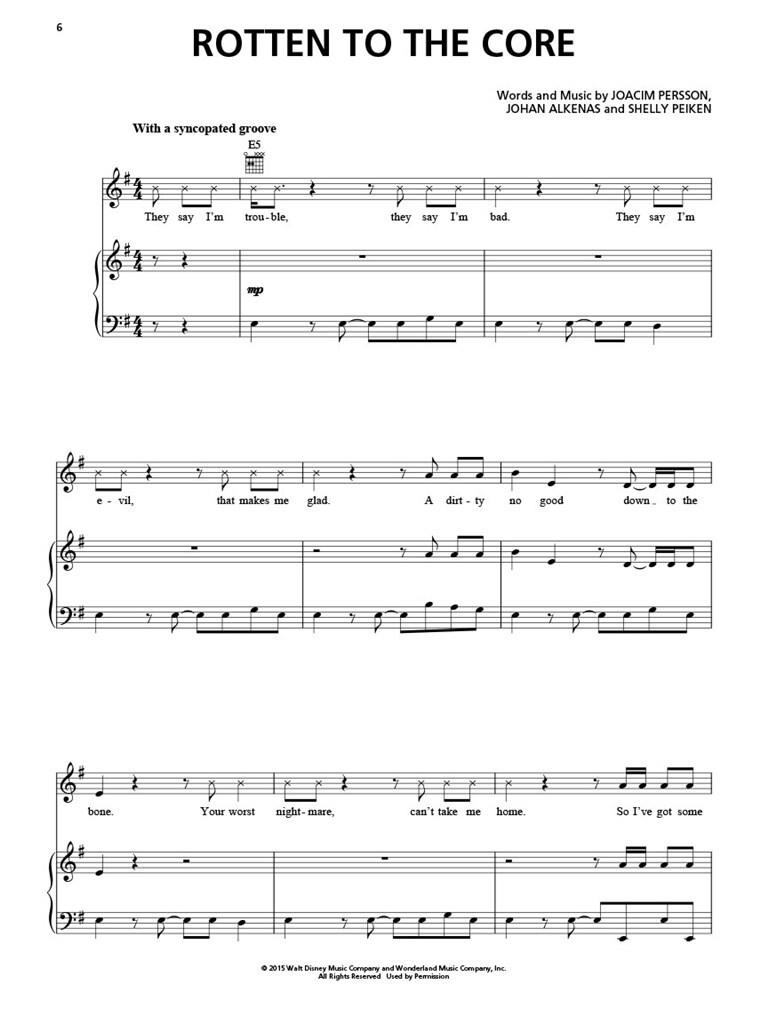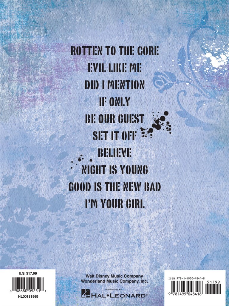 Réalisé par Kenny Ortega, ce film original de Disney Channel suit les adolescents de célèbres méchants Disney et leurs escapades pour libérer leurs parents de l’Île des Perdus. La bande originale a débuté à la première place du Billboard 200, et notre recueil de chansons correspondant comprend 10 titres : Be Our Guest · Crois · Ai-je mentionné · Mauvais comme moi · Le bien est le nouveau mal · Je suis ta fille · Si seulement · La nuit est jeune · Pourri jusqu’au cœur · Déclenche-le. Ce folio inclut même des illustrations en couleur tirées du film.