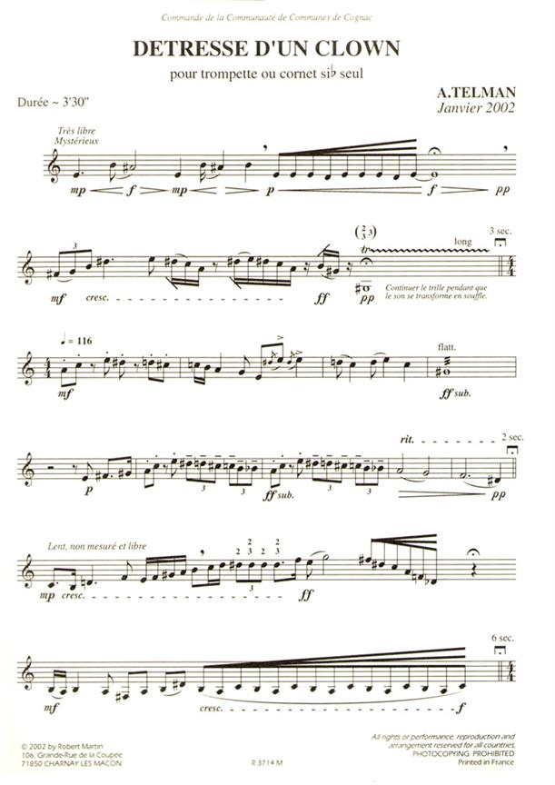 Ballade, Sib Ou Ut BROUQUIERES JEAN Trompette et Piano Robert Martin 9,80€