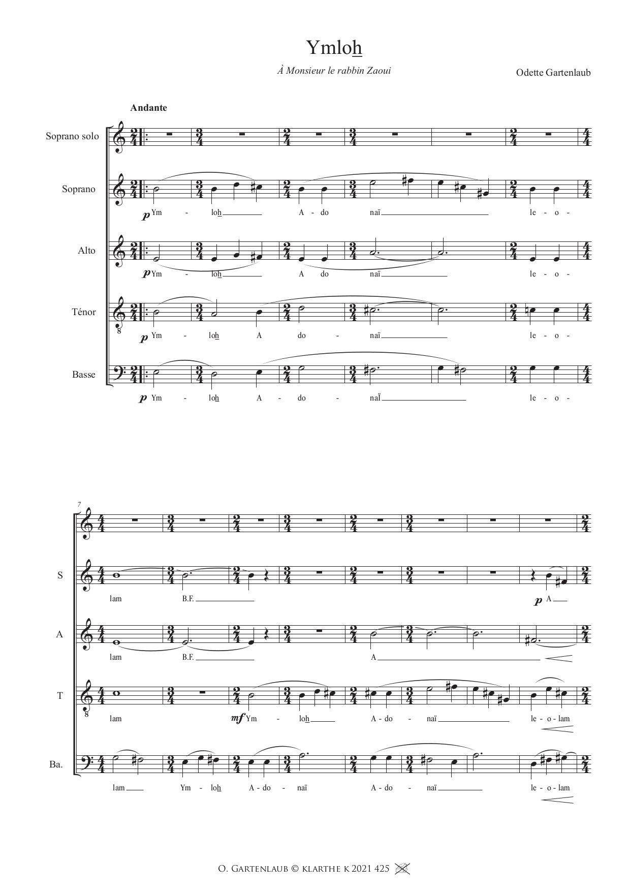 Deux choeurs de la liturgie hébraïque – 1. Ymloh GARTENLAUB ODETTE