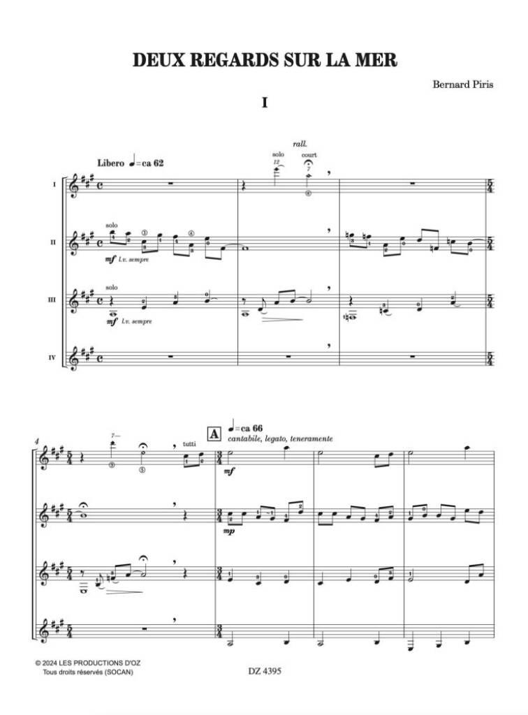 Ces deux pièces pour ensembles de guitares (d’une durée totale d’une dizaine de minutes) sont une commande du conservatoire (CRD) de Saint-Nazaire (création le 5 avril 2025). La première s’adresse à des participants de 1er cycle, la deuxième associe ces derniers à des élèves de 2e cycle, en répartissant les différents niveaux de difficulté selon les pupitres. Leur propos musical réside dans l’évocation, des impressions face à la mer, tantôt calme, tantôt agitée, à travers un matériau thématique, mouvant et contrasté, commun aux deux pièces.