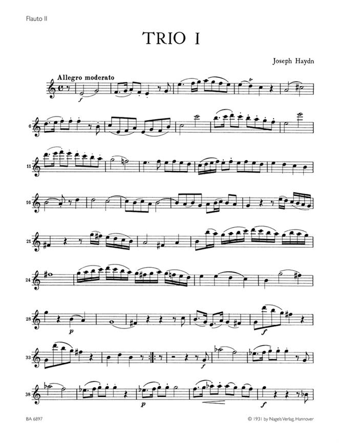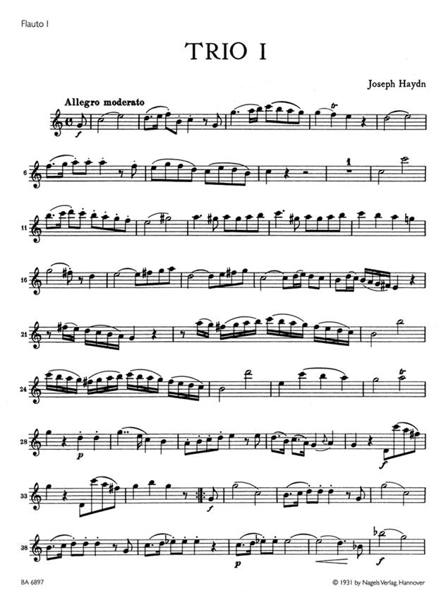 The Flute trios which Joseph Haydn composed in London in 1794 are spirited pieces similar to divertimenti. They first became known thanks to Leo Balet's carefully prepared edition of 1933. These trios, which are of moderate difficulty and let both Flutes partake in the musical activity to an equal extent, have won a permanent place in Flute teaching as well as in home music making.