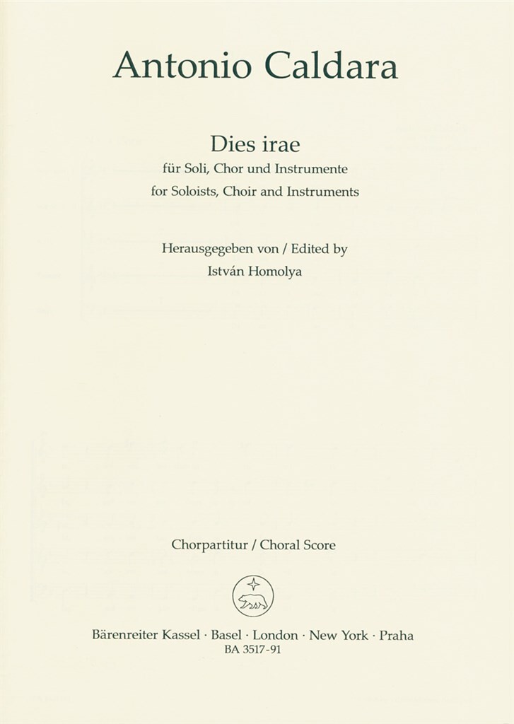 Dies Irae CALDARA ANTONIO Solistes (SSATTBB), Choeur Mixte (SSATB) et Orches Bärenreiter 26,10€