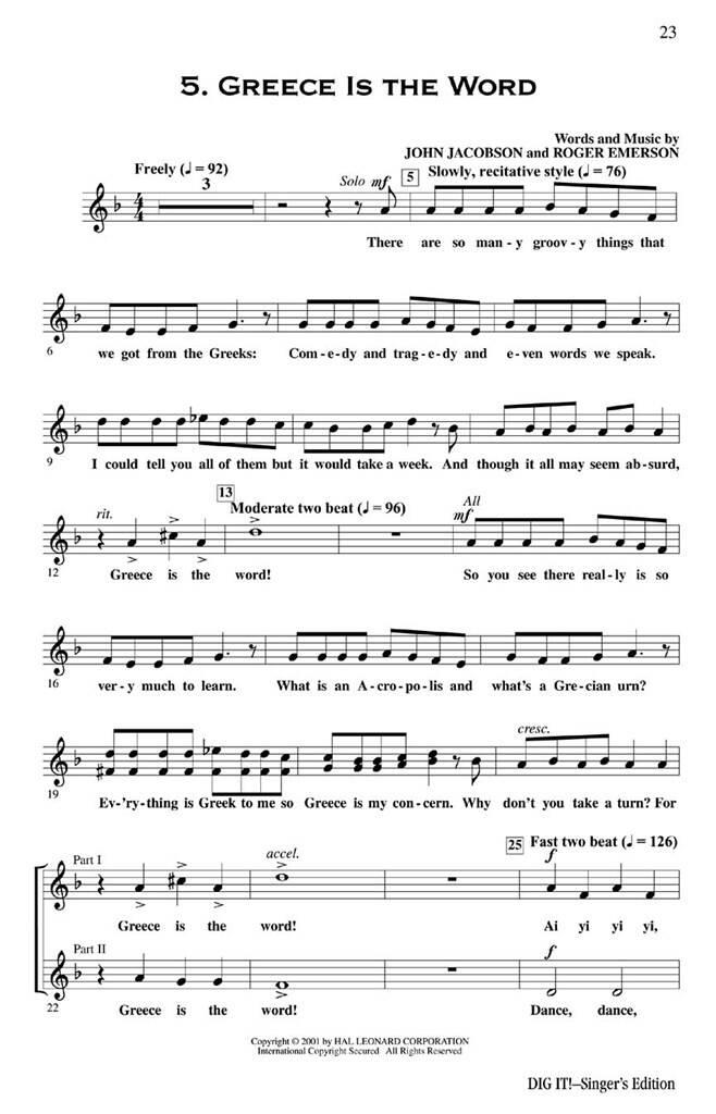Voyagez dans le temps et rejoignez les archéologues curieux, Taki et Tut, ainsi que leur amie fossile, Lucy, alors qu’ils explorent les merveilles de la civilisation ancienne. Des ouvriers agricoles de la Mésopotamie ancienne et des momies égyptiennes qui « rappent » à un chœur de Grecs anciens ainsi que de Romulus et Rémus qui rêvent de construire une grande ville, vous et vos élèves adorerez découvrir les mystères archéologiques du passé. Disponible : Teacher’s Edition, Singer 5-Pak, CD Preview et CD ShowTrax. Durée de la représentation : 35 minutes. Pour les classes de 4e à 8e.