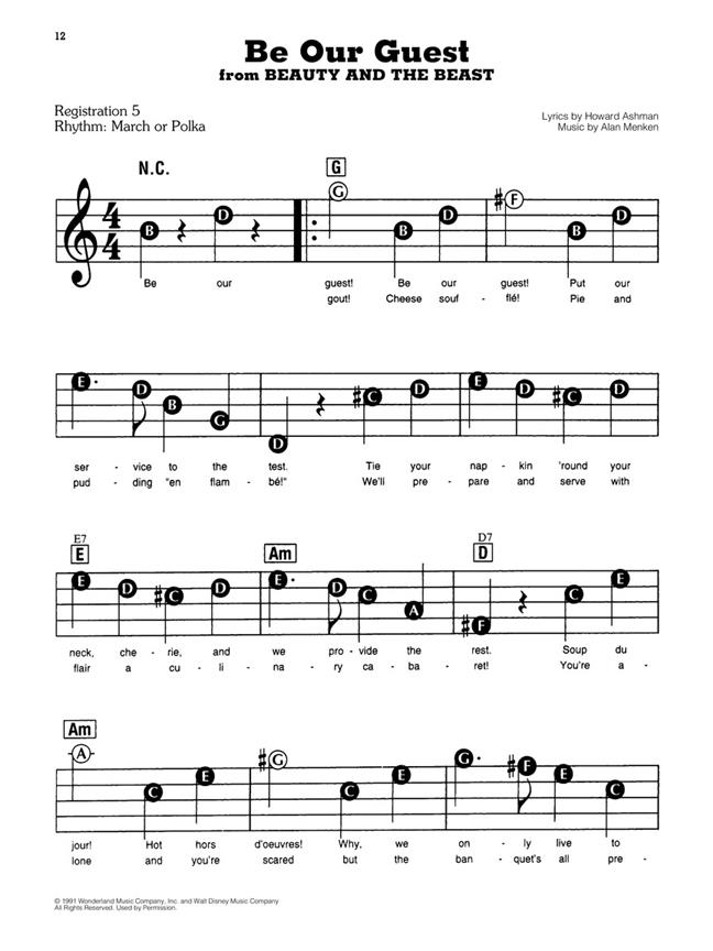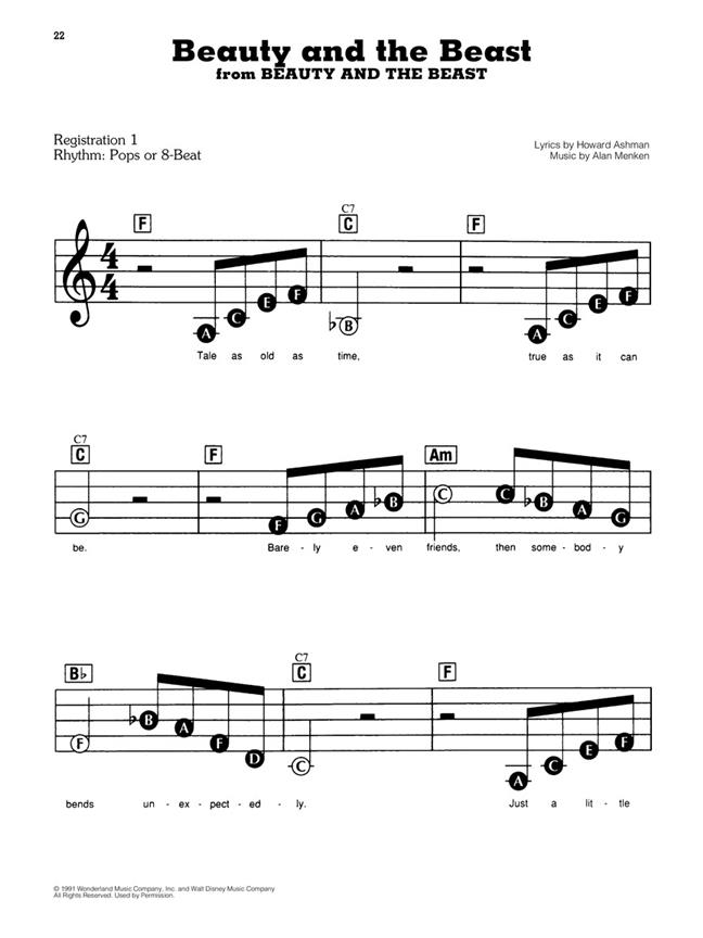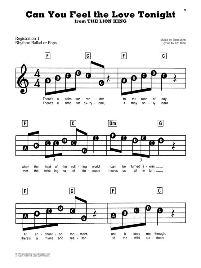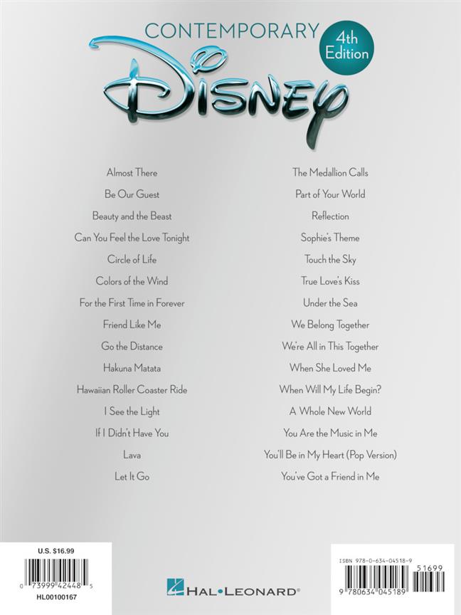 Une collection de chansons de Disney contemporains plus appréciées dans l'agencement de la ligne mélodie, notation tête grosse lettre. Convient pour les organes, les pianos et claviers électriques.