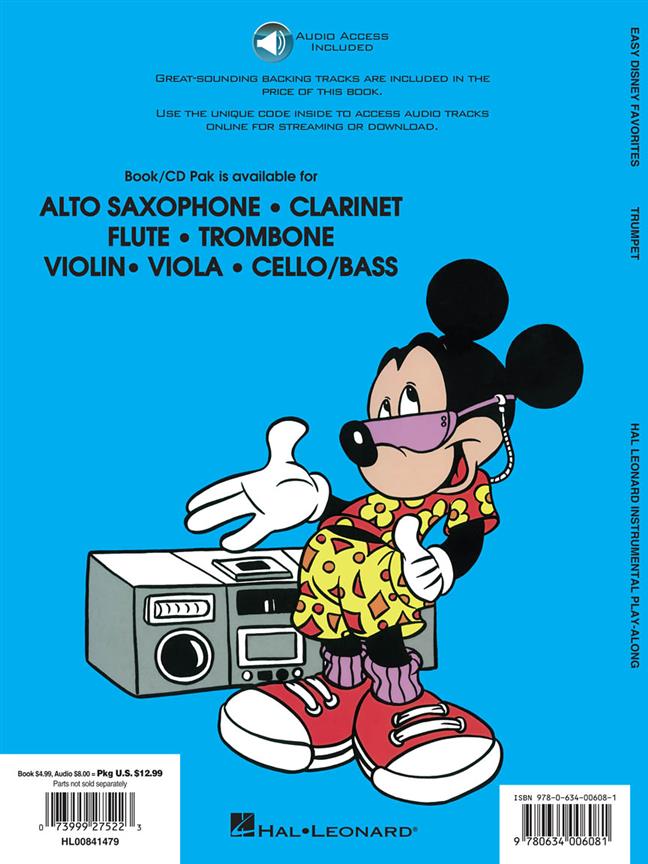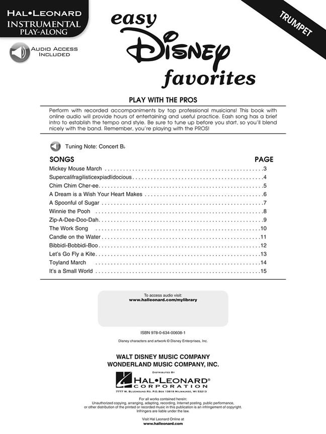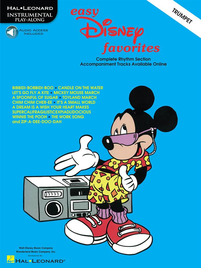 Partitions pour trompette. Jouez les plus célébres chansons de Disney accompagné d'un enregistrement audio. Ce livre + CD vous offre la possibilité de vous entrainer au jeu en groupe. Arrangements faciles pour débutants et niveau intermediaire.