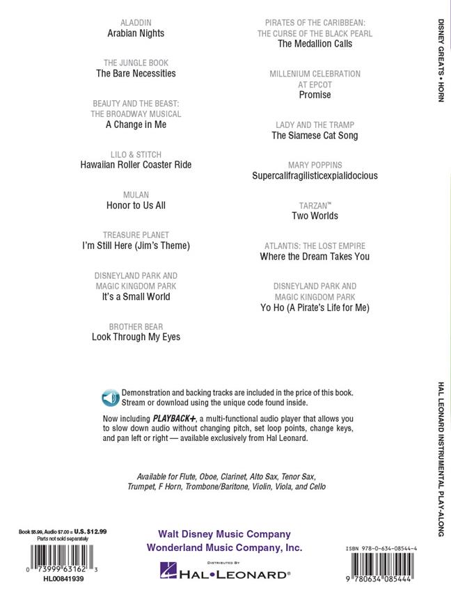 Voici une occasion fantastique pour vous de devenir le soliste dans ces favoris de Disney spécialement sélectionnés ! Chaque chanson est présenté en notation claire et les caractéristiques de CD qui l'accompagne, que suivre une démonstration complète et soutien pour chaque chanson afin que vous pouvez découvrir le bruit d'un ensemble de professionnel comme votre bande ! Quinze chansons ont été sélectionnés du riche patrimoine de Disney, y compris des moments inoubliables de Mary Poppins et livre de la Jungle tout spécialement adaptés pour cor.