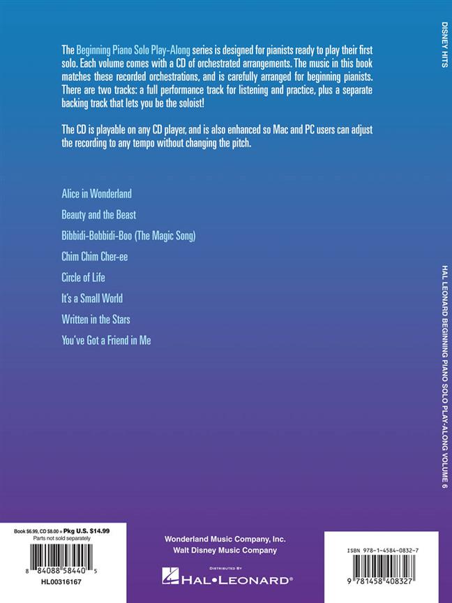 Le Piano Solo Début Play-Along série est conçue pour les pianistes prêts à jouer leur premier solo. Chaque volume est livré avec un CD d'arrangements orchestrés. La musique dans ce livre correspond à ces orchestrations enregistré et est soigneusement arrangé pour pianistes début. Il ya deux pistes: une piste pleine performance d'écoute et de pratique, plus une piste d'accompagnement séparée qui vous permet d'être le soliste! Le CD est jouable sur n'importe quel lecteur CD, et est également renforcée afin utilisateurs Mac et PC permet de régler l'enregistrement à n'importe quel tempo sans changer la hauteur.