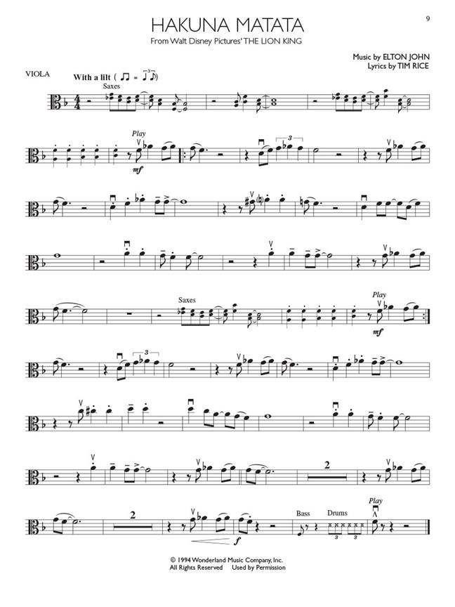 Disney Movie Hits arrangé pour alto, arrangements solos avec CD accompagnements.
