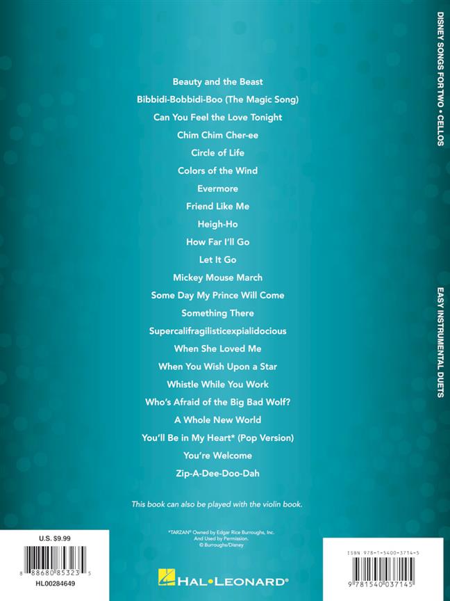 23 chansons de Disney arrangées pour deux instruments dans une version facile. Sommaire : Beauty and the Beast - Circle of Life - Evermore - Friend like Me - How Far I'll Go - Let It Go - Mickey Mouse March - Supercalifragilisticexpialidocious - When You Wish upon a Star - A Whole New World - Zip-A-Dee-Doo-Dah - et bien d'autres. Les recueils pour instruments à vent peuvent être combinés entre eux.