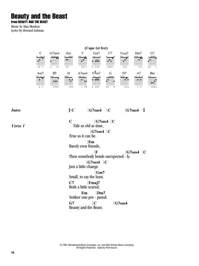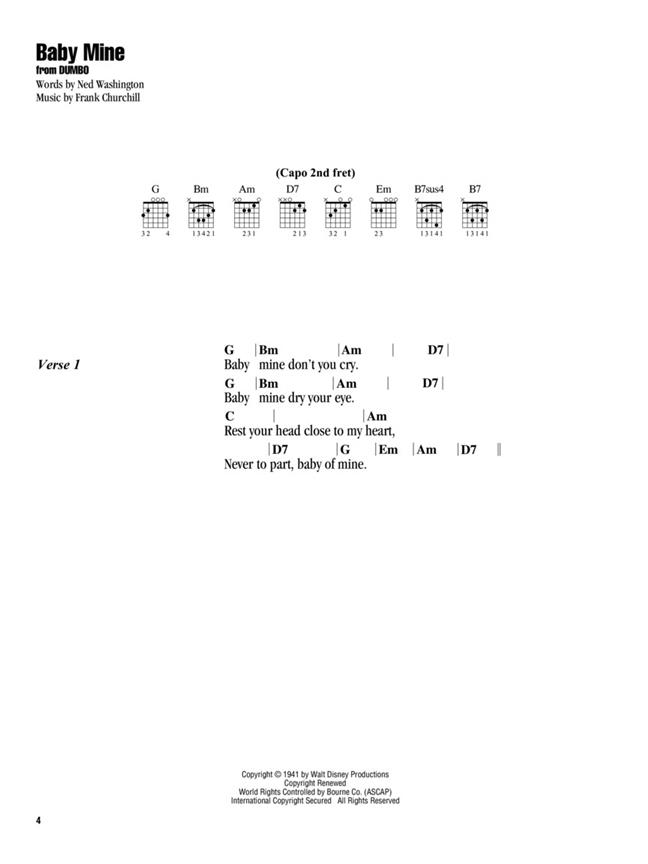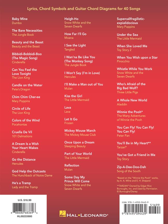 Young guitar students will love playing their favorite Disney tunes with this collection of 40 songs arranged in lyrics, chord symbols and guitar chord diagrams.