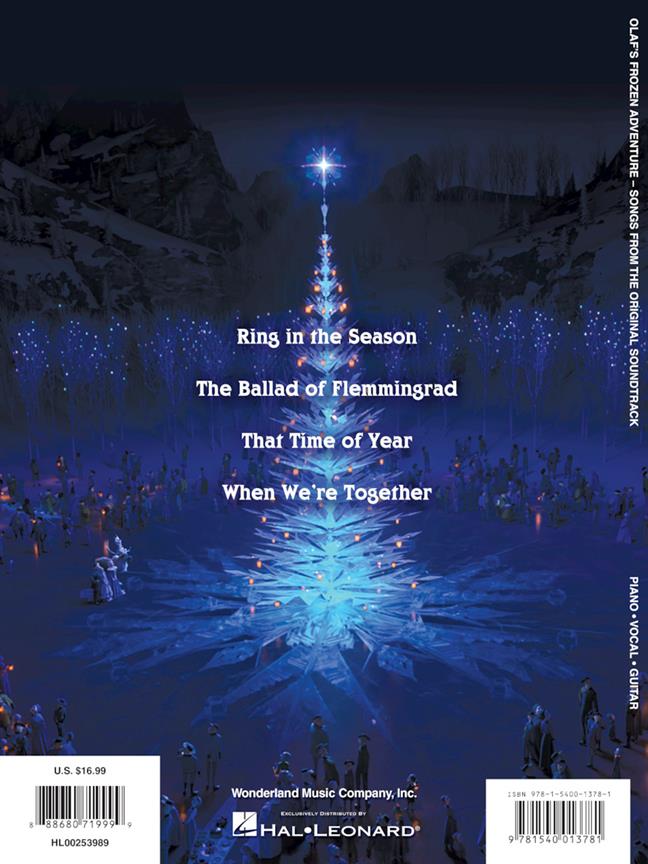 Olaf and his friends from the Disney hit Frozen are back in this 2017 3-D computer-animated short film. Our songbook features four original songs from the soundtrack: The Ballad of Flemmingrad - Ring in the Season - That Time of Year - When We're Together. 8 pages of full color artwork from the film included!