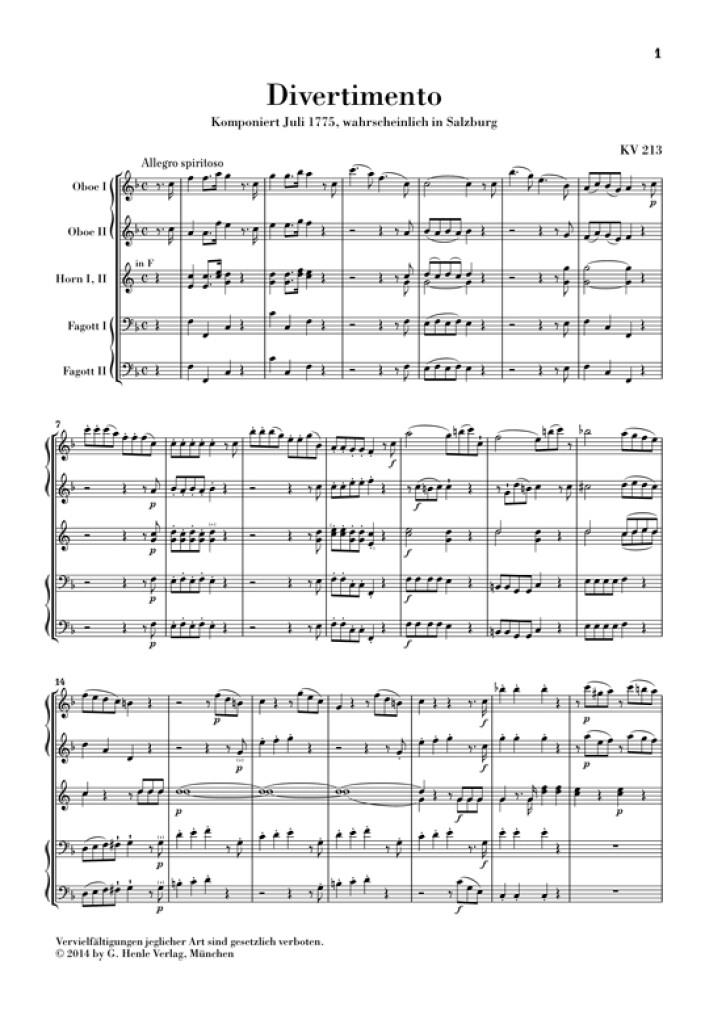 Divertimento in F major KV 213, Divertimento in B flat major KV 240, Divertimento in E flat major KV 252 (240a), Divertimento in F major KV 253, Divertimento in B flat major KV 270