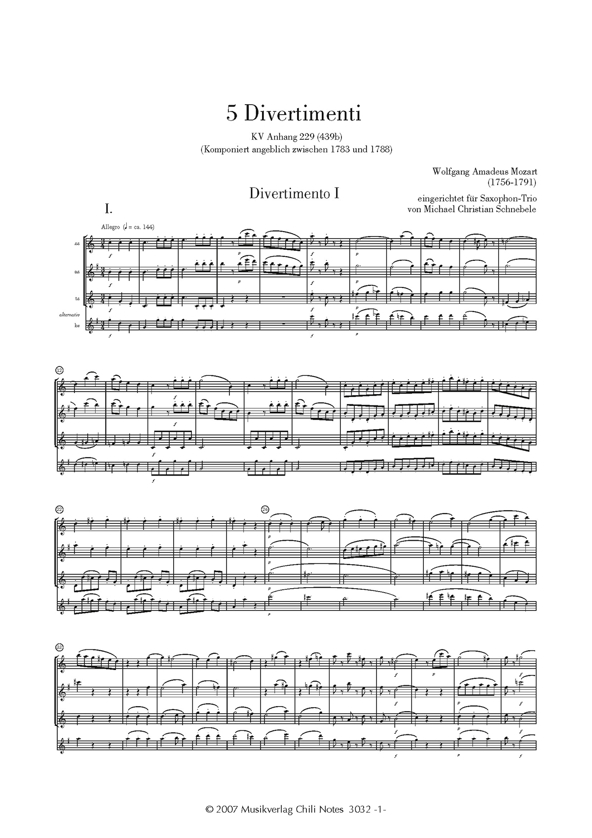 Divertimento 1-5 KV Anhang 229 MOZART WOLFGANG AMADEUS