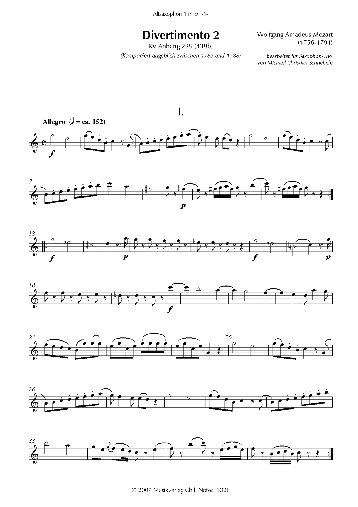 Divertimento 2 KV Anhang 229 MOZART WOLFGANG AMADEUS