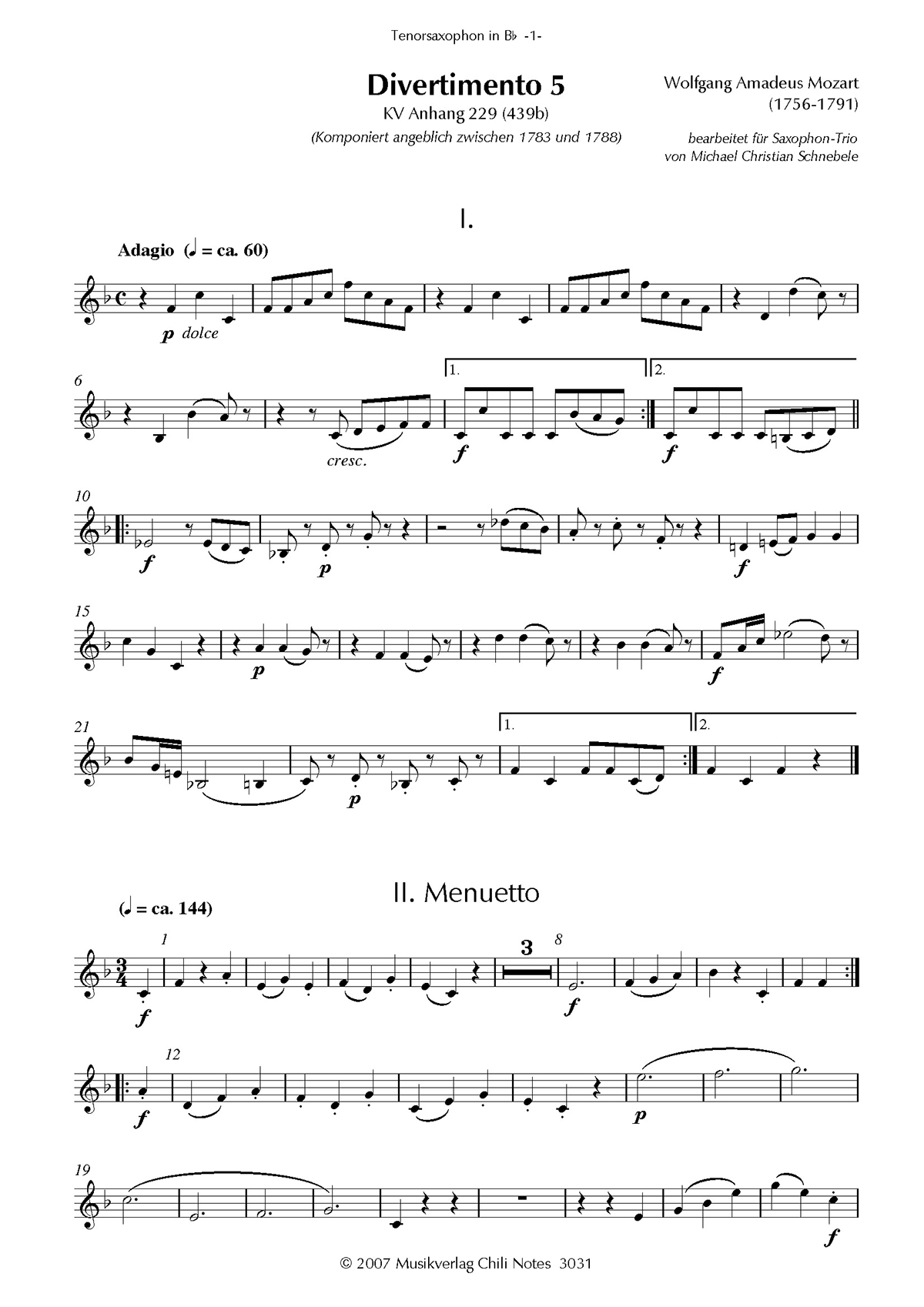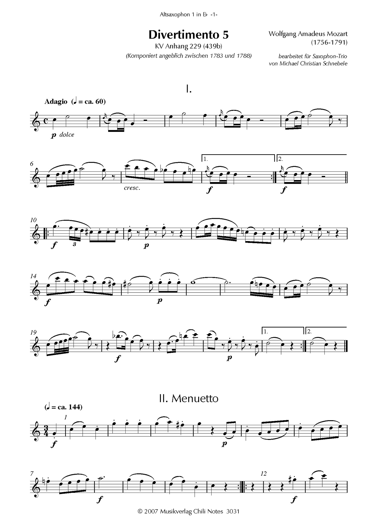 Divertimento 1 KV Anhang 229 MOZART WOLFGANG AMADEUS Saxophone Alto et Baryton Chili Notes 39,20€