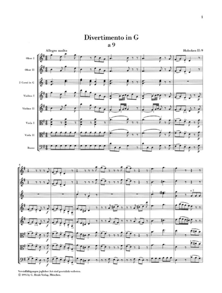 Divertimento G major Hob. II:9 for 2 Oboes, 2 Horns, 2 Violins, 2 Violas and Basso Continuo