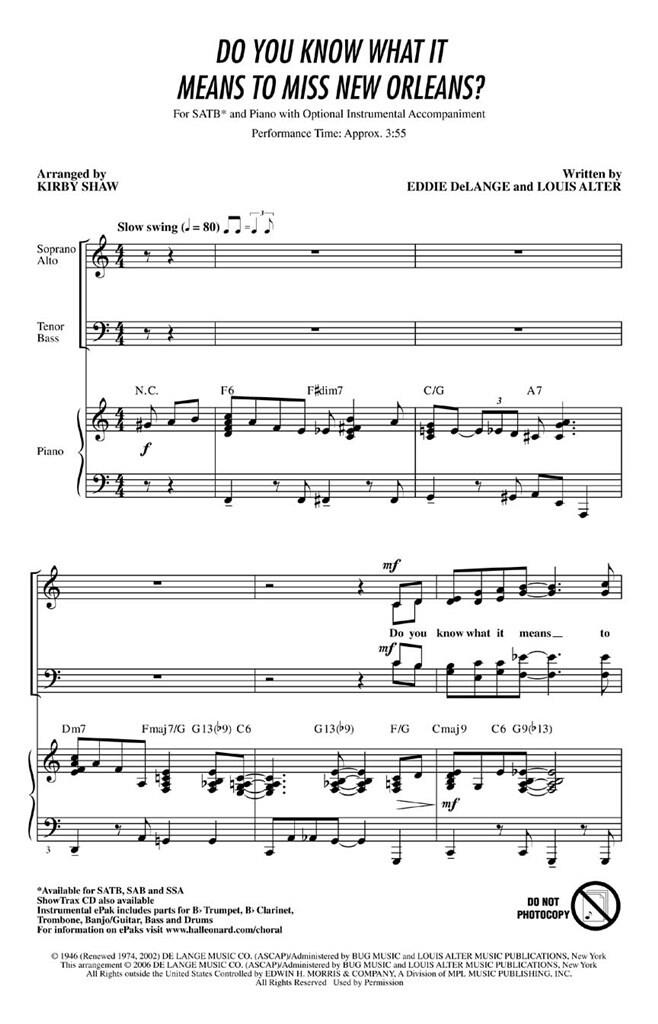 Enregistré par des grands noms tels que Louis Armstrong, Billie Holiday et Frank Sinatra, ce standard bluesy est un bel hommage à une grande ville ! Idéal pour un concert hommage ! Disponibles séparément : SATB, SAB et SSA. L’ePak instrumental comprend des parties : si bémol, trompette, clarinette si bémol, trombone, banjo/guitare, basse et batterie. CD ShowTrax également disponible. Durée de la représentation : environ 3h55