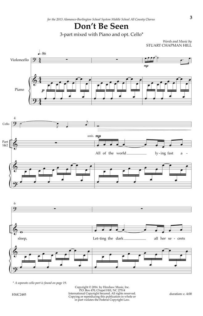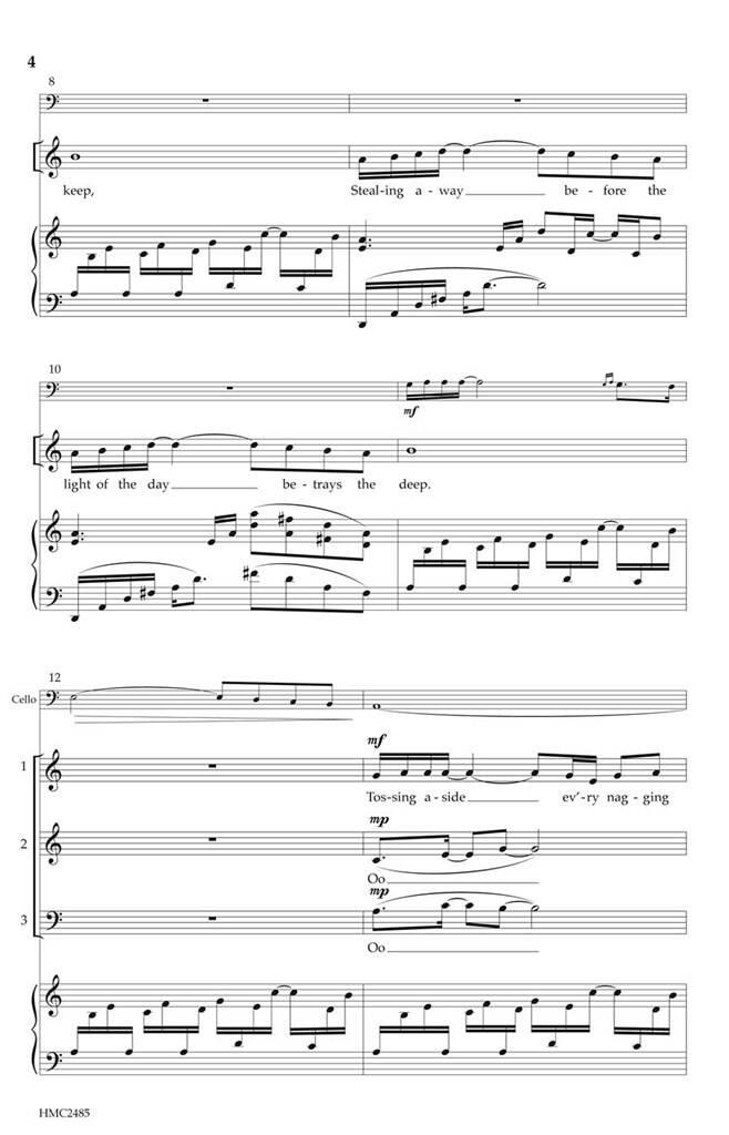 Écrite à l’origine pour un chœur d’honneur de collège, cette pièce énergique avec un violoncelle optionnel peut être un succès pour des voix de tous âges. C’est parfait pour un festival ou une chorale d’honneur !